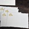 Vintage hand stamped in gold on lightly serrated cream laid paper.